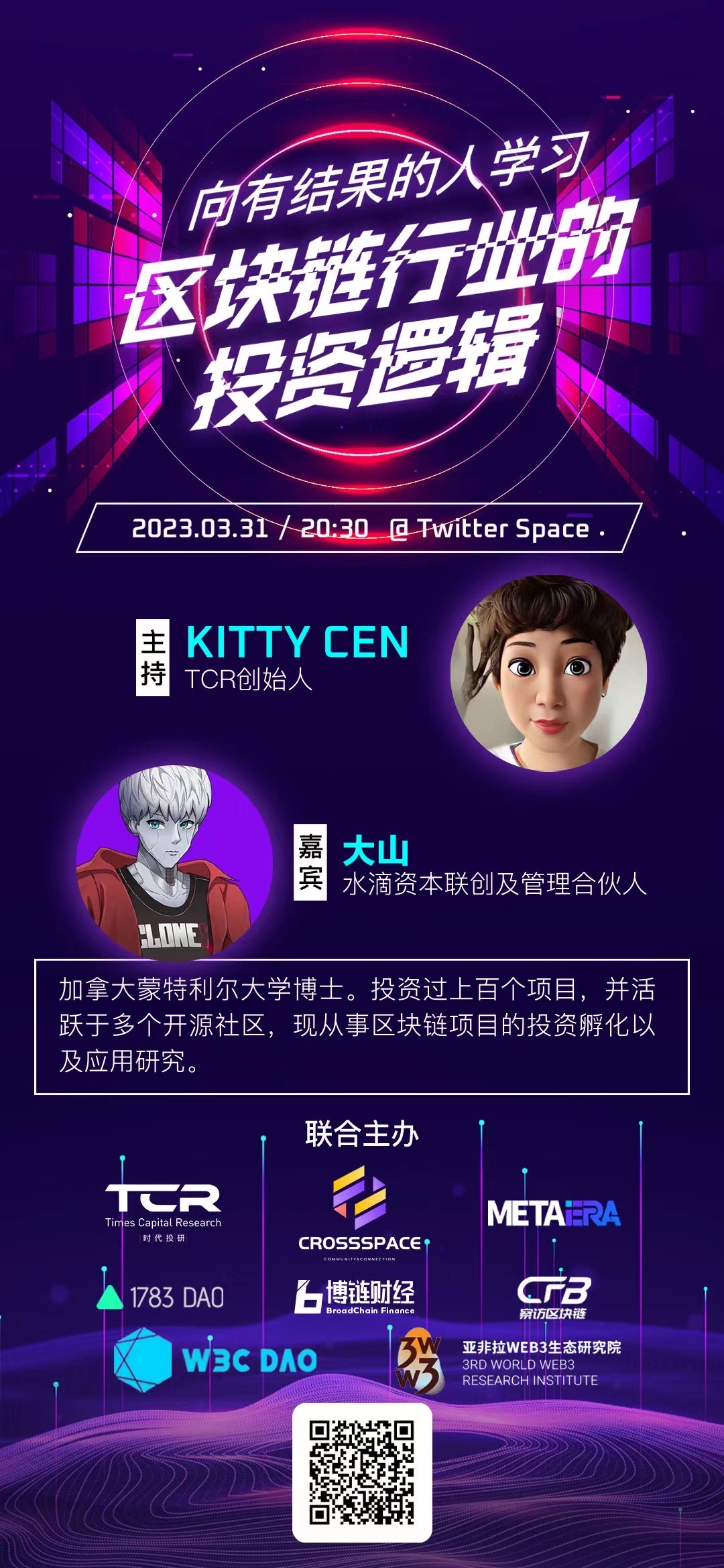 3月31日,时代投研创始人Kitty Cen 就区块链投资逻辑向水滴资本创始人大山发起Twitter Space 提问。