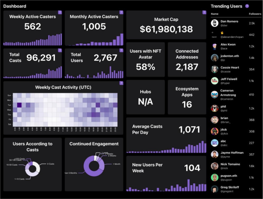 Farcaster上的主要应用是Farcaster应用程序,这是一个类似Twitter的应用程序,具有加密货币的原生功能,如链上活动跟踪、NFT简介、NFT后收集等。为了保持良好的社区氛围,Farcaster团队严格控制用户的流动。目前有几百个活跃用户。观察社区和用户体验是否能随着生态的扩大而保持,将是一件很有趣的事情。